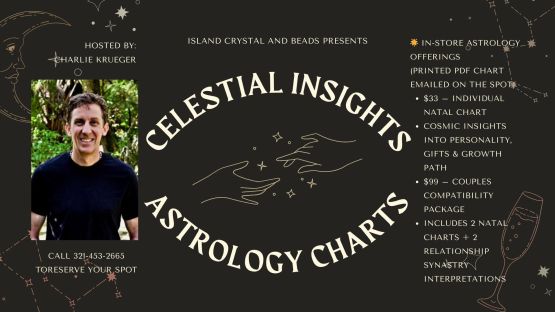 FeaturedIn-Store Astrology Offerings (Printed PDF chart emailed on the spot) $33 – Individual Natal Chart Cosmic insights into personality, gifts & growth path $99 – Couples Compatibility Package Includes 2 natal charts + 2 relationship synastry interpretations